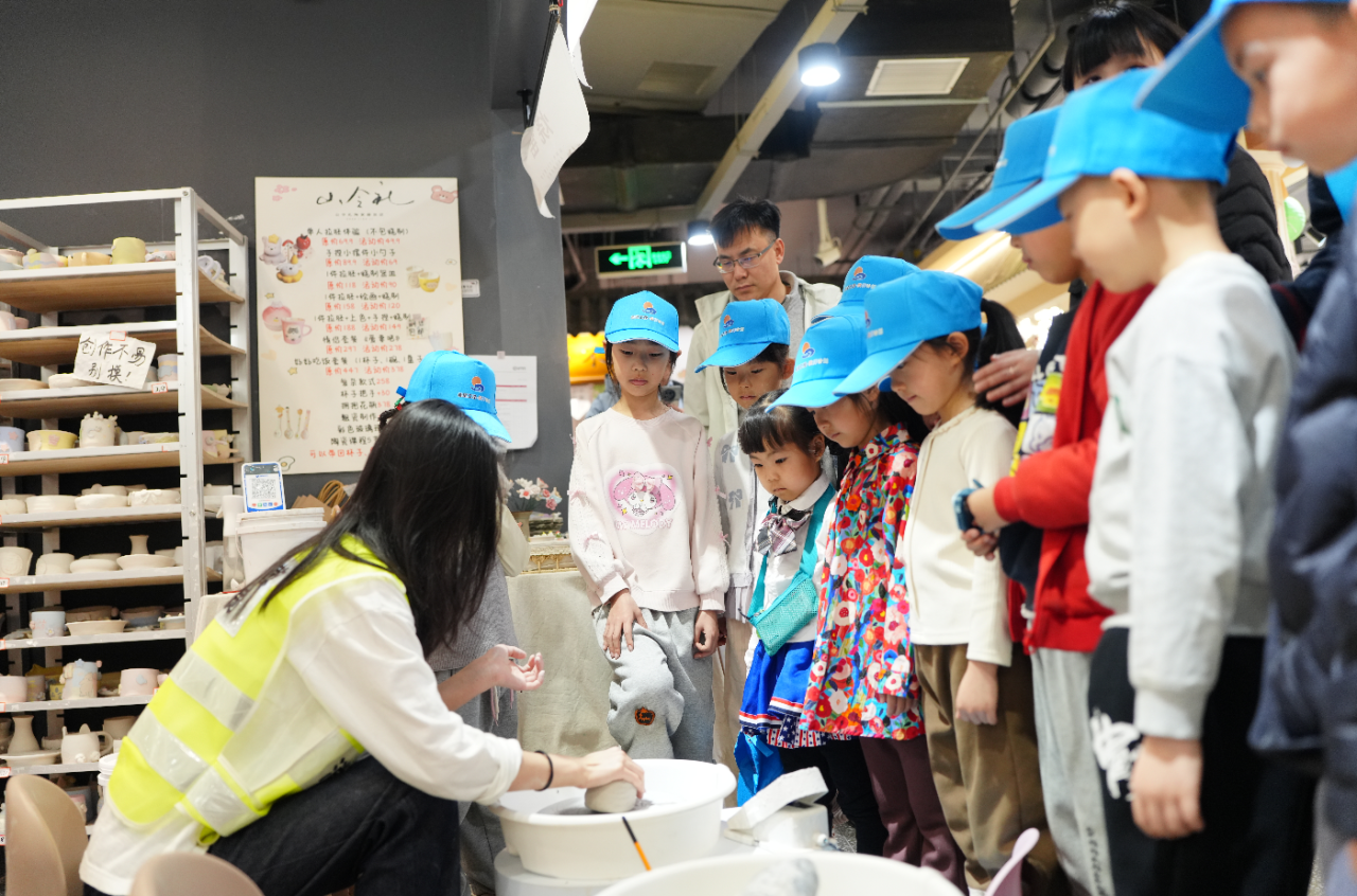 国家队打卡墙前,孩子们大声为中国队加油,在欢声笑语中传递拼搏进取的体育精神;特别设置的陶艺手工环节,让孩子们在指尖创作中亲近传统技艺,体悟“匠心”背后的坚守与热爱;大龙猫馆里,与萌物的亲密互动,更激发了孩子们探索自然的浓厚兴趣。