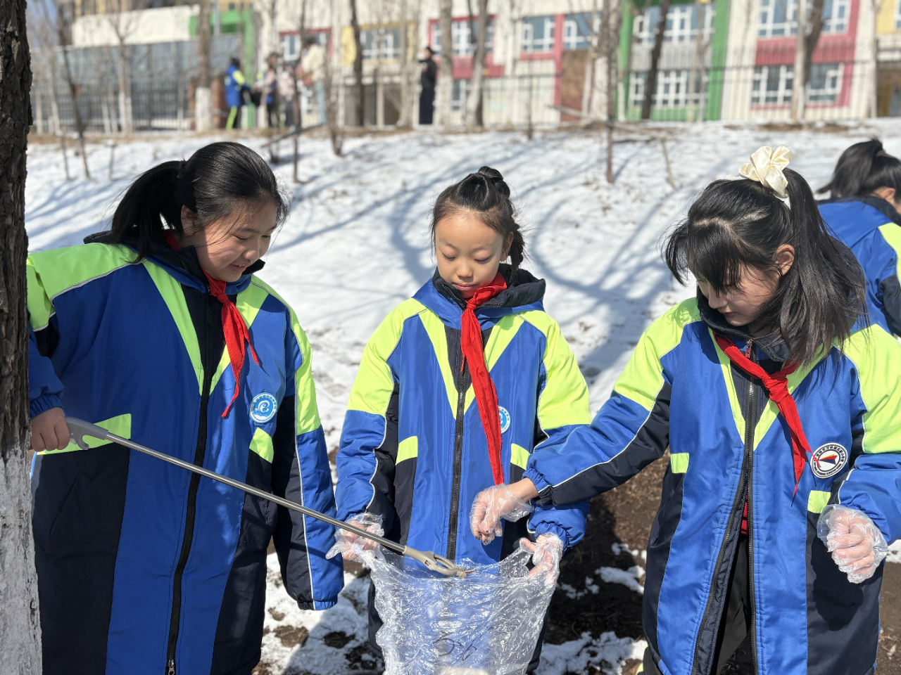 白山市江源区实验小学举办学雷锋手抄报展播活动,队员们以笔为媒、以墨寄情,将对雷锋同志的崇敬与赞美融入笔尖,让雷锋精神内化于心、外化于行;湾沟小学组织学生开展校园周边垃圾清理志愿服务,队员们齐心协力清理杂物,美化周边环境,在劳动中培养责任意识与奉献精神。