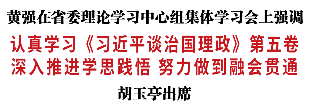 9月29日,省委书记黄强主持召开省委理论学习中心组集体学习会。省委副书记、省长胡玉亭出席会议。