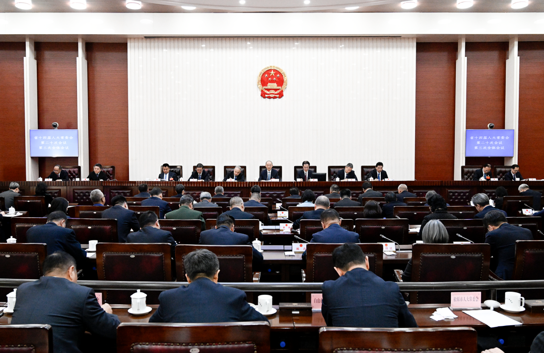 高广滨主持第三次全体会议。会议表决通过了《吉林省人民代表大会常务委员会关于召开吉林省第十四届人民代表大会第五次会议的决定》《吉林省人民代表大会常务委员会关于加快推进长春现代化都市圈建设的决定》;表决通过了《吉林省优化营商环境条例(修订)》《吉林省人参产业条例(修订)》《吉林省边境管理条例(修订)》《吉林省人民代表大会常务委员会关于修改〈吉林省道路运输条例〉等部分地方性法规的决定》;批准了《长春市妇女权益保障条例》《辽源市城市生活垃圾分类管理条例》《辽源市人民代表大会常务委员会关于修改〈辽源市农村人居环境治理条例〉的决定》《松原市城市建筑垃圾管理条例》《白城市城市公园管理条例》;表决通过了《吉林省人民代表大会常务委员会关于批准吉林省增加发行2025年地方政府债券及调整预算的决议》;表决通过了省人大经济委员会、省人大教育科学文化卫生委员会、省人大农业与农村委员会、省人大社会建设委员会关于省十四届人大四次会议主席团交付审议的代表提出的议案办理和审议结果的报告;表决通过了人事任免名单,决定任命刘伟为吉林省副省长。