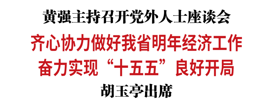 12月29日,省委书记黄强主持召开党外人士座谈会。省委副书记、省长胡玉亭出席会议。