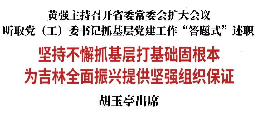 按照中央统一部署,1月6日,省委书记黄强主持召开省委常委会扩大会议,听取党(工)委书记抓基层党建工作“答题式”述职。黄强强调,要认真学习、深刻领悟、不折不扣落实习近平总书记关于党的建设的重要思想,坚持不懈抓基层、打基础、固根本,进一步建强党的基层组织体系,增强基层党组织政治功能和组织功能,为吉林全面振兴提供坚强组织保证。省委副书记、省长胡玉亭出席会议。中央组织部组织一局主要负责同志到会指导并作集中点评。