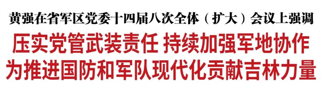 黄强强调,今年是中国共产党成立105周年、红军长征胜利90周年,打好实现建军一百年奋斗目标攻坚战到了最关键时期。全省军地各级要大力传承弘扬伟大长征精神和东北抗联精神,持续推动新时代人民武装工作走深走实。一要深入推进政治建军,始终对党绝对忠诚。学懂弄通做实习近平强军思想,夯实听党话、跟党走的思想政治根基。铸就坚如磐石的理想信念信仰,锤炼敢打必胜的血性胆气铁骨。严格落实管党治党政治责任,锻造忠诚干净担当、堪当强军重任的高素质干部队伍。二要刻不容缓练兵备战,全面提升打赢能力。保持常备不懈,强化实战实训,完善党政军警民“五位一体”强边固防机制,切实守护好千里边关。三要做优做强国防动员,持续释放援战效能。构建具有吉林特色的国防动员体系,推动新质生产力同新质战斗力高效融合、双向拉动。四要发扬双拥光荣传统,巩固军政军民团结。依托“三地三摇篮”红色资源,讲好国防故事,搭建实践平台,打造特色品牌,大力营造关心国防、热爱国防、建设国防、保卫国防的浓厚氛围。各级党委政府要关心支持部队建设,维护军人军属合法权益,在全社会树立尊崇军人、关爱军属的鲜明导向。省军区要充分发挥军地“桥梁纽带”作用,做到抢险救灾打头阵、应急处突当先锋、稳边固边站排头、乡村振兴作贡献、弘扬新风立标杆。驻吉部队官兵要牢记全心全意为人民服务的根本宗旨,始终把驻地当故乡、视人民为亲人,永远做群众信赖、人民热爱的子弟兵。