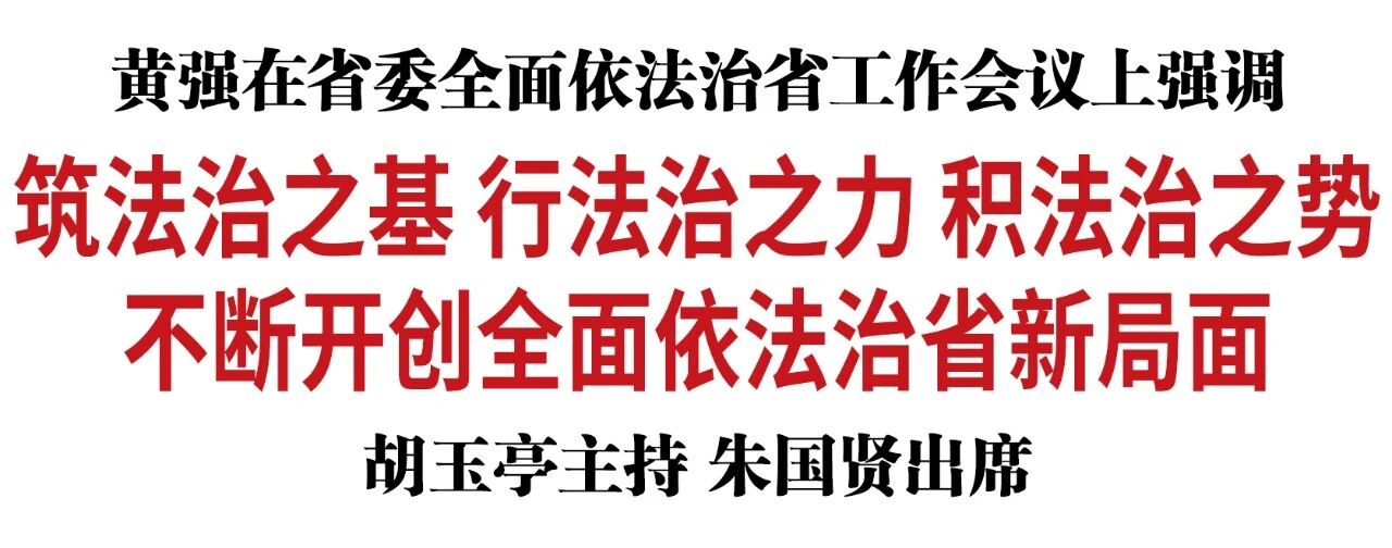 黄强要求,要加强党对全面依法治省的领导,省委全面依法治省委员会要谋大事、议大事、抓大事,各级党委(党组)要整体推进、全面落实法治建设部署,各部门各领域要认真履职尽责、形成工作合力。各级领导干部要带头尊法学法守法用法,不断提高运用法治思维和法治方法深化改革、推动发展、化解矛盾、维护稳定、应对风险的能力。要加强法治工作队伍、法律服务队伍建设和法治人才培养,推动法学教育、法学研究更好服务人民群众。