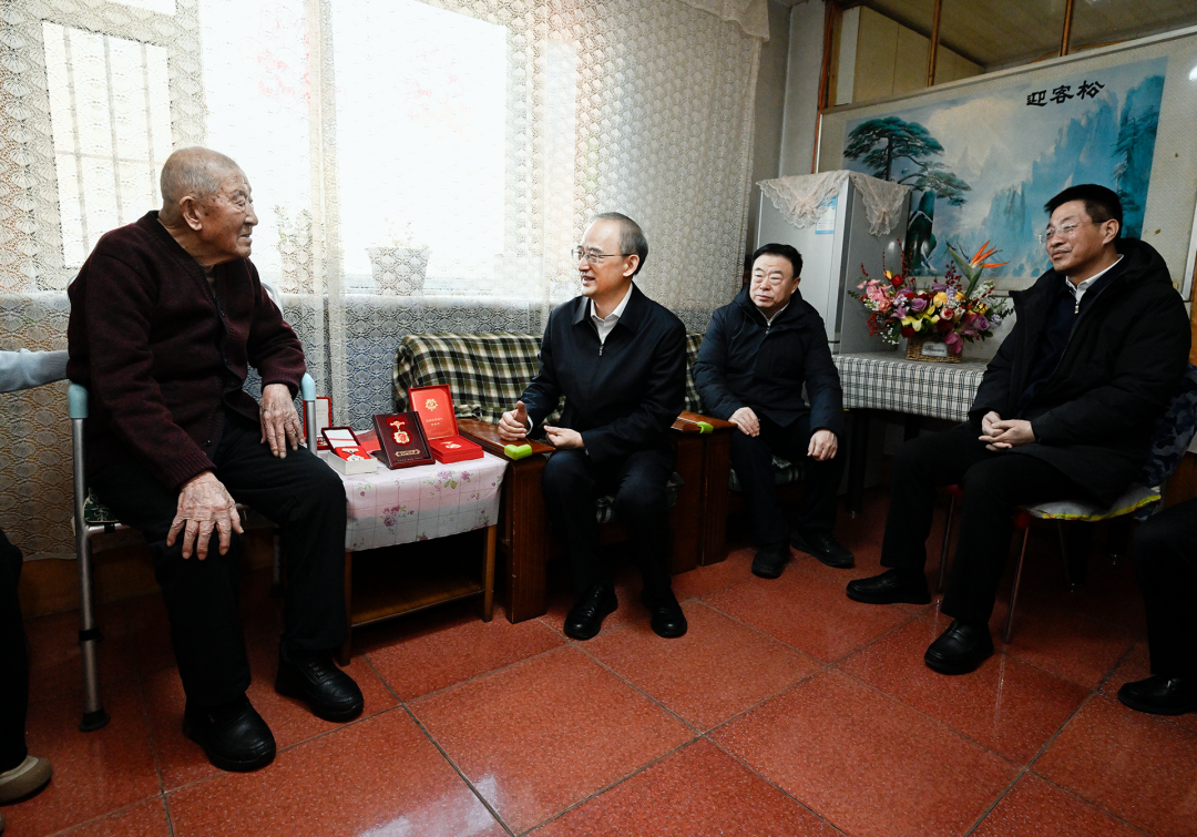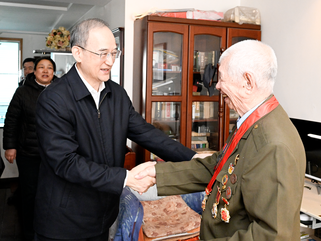 93岁的老战士夏英杰15岁就参军入伍,曾参加过淮海战役、渡江战役等重大战役和抗美援朝战争。黄强与老战士亲切握手,看到老人身着旧军装、佩戴军功章,神采奕奕、容光焕发,他非常高兴。黄强说,您年少从军、南征北战,为人民解放事业立下了汗马功劳,感谢您为党和国家作出的贡献。新春佳节就要到了,祝您健康长寿、阖家欢乐、万事如意。黄强叮嘱有关部门照顾好老党员、老战士、老同志的生活,做好家庭适老化改造,帮助解决实际困难,让他们深切感受到党和政府的温暖关怀。