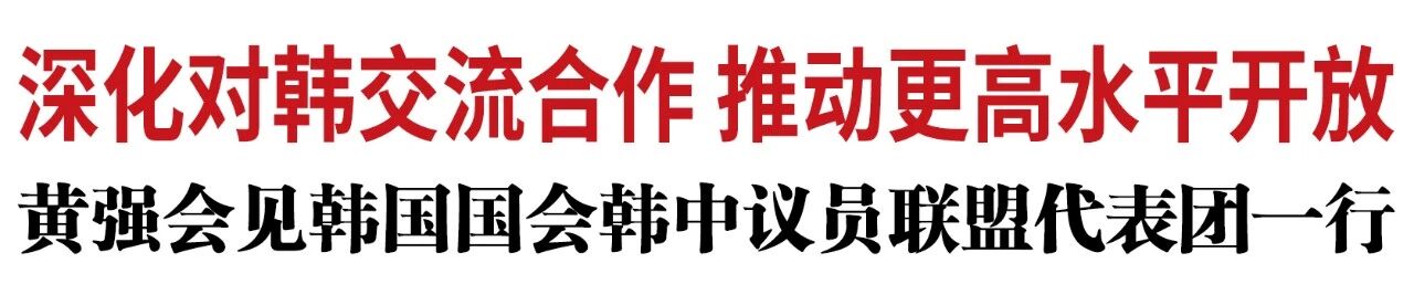黄强向代表团一行表示欢迎。他说,中韩是搬不走的重要近邻、分不开的合作伙伴。习近平主席与李在明总统两次见面并实现互访,为中韩战略合作伙伴关系沿着健康轨道迈进提供了战略指引。吉林省高度重视与韩国的友好往来,在经贸合作、人文交流等多个领域取得丰硕成果。今年是中国“十五五”开局之年,吉林正在推动更高水平开放,打造我国向北开放重要窗口和东北亚地区合作中心枢纽。希望韩中议员联盟与我们一道,推动吉林与韩国地方进一步加强人大议会间交流,深化产业互补,扩大贸易规模,促进人文互鉴,拓展旅游合作。2027年世界大学生冬季运动会将在吉林长春举办,诚挚邀请韩国青年大学生与我们共赴这场冰雪之约、青春盛会。