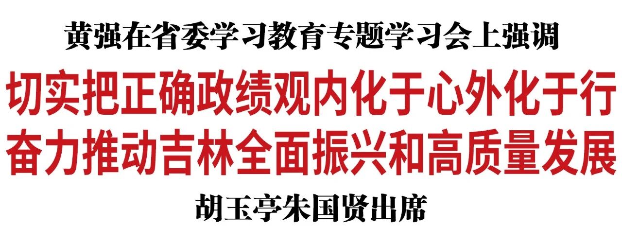 4月7日,省委书记黄强主持召开省委学习教育专题学习会,全文领学《求是》杂志发表的习近平总书记重要文章《树立和践行正确政绩观》。黄强强调,要扎实开展树立和践行正确政绩观学习教育,引导党员干部坚持好、运用好贯穿习近平新时代中国特色社会主义思想的立场观点方法,从中感悟为政之德、从政之道、施政之要,切实把正确政绩观内化于心、外化于行,奋力推动吉林全面振兴和高质量发展。省委副书记、省长胡玉亭,省政协主席朱国贤出席会议。