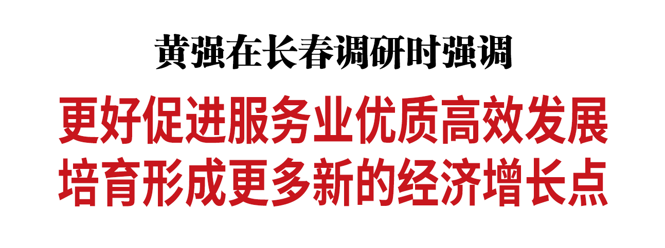调研中,黄强强调,吉林省服务业发展空间广阔。要深入实施服务业扩能提质行动,推动生产性服务业向专业化和价值链高端延伸,促进生活性服务业高品质多样化便利化发展。长春要坚决负起责任,聚焦未来具有较大发展潜力、较强带动作用的重点领域,采取针对性措施,充分激发经营主体活力,创造更多新兴服务业态,不断开拓增量市场。