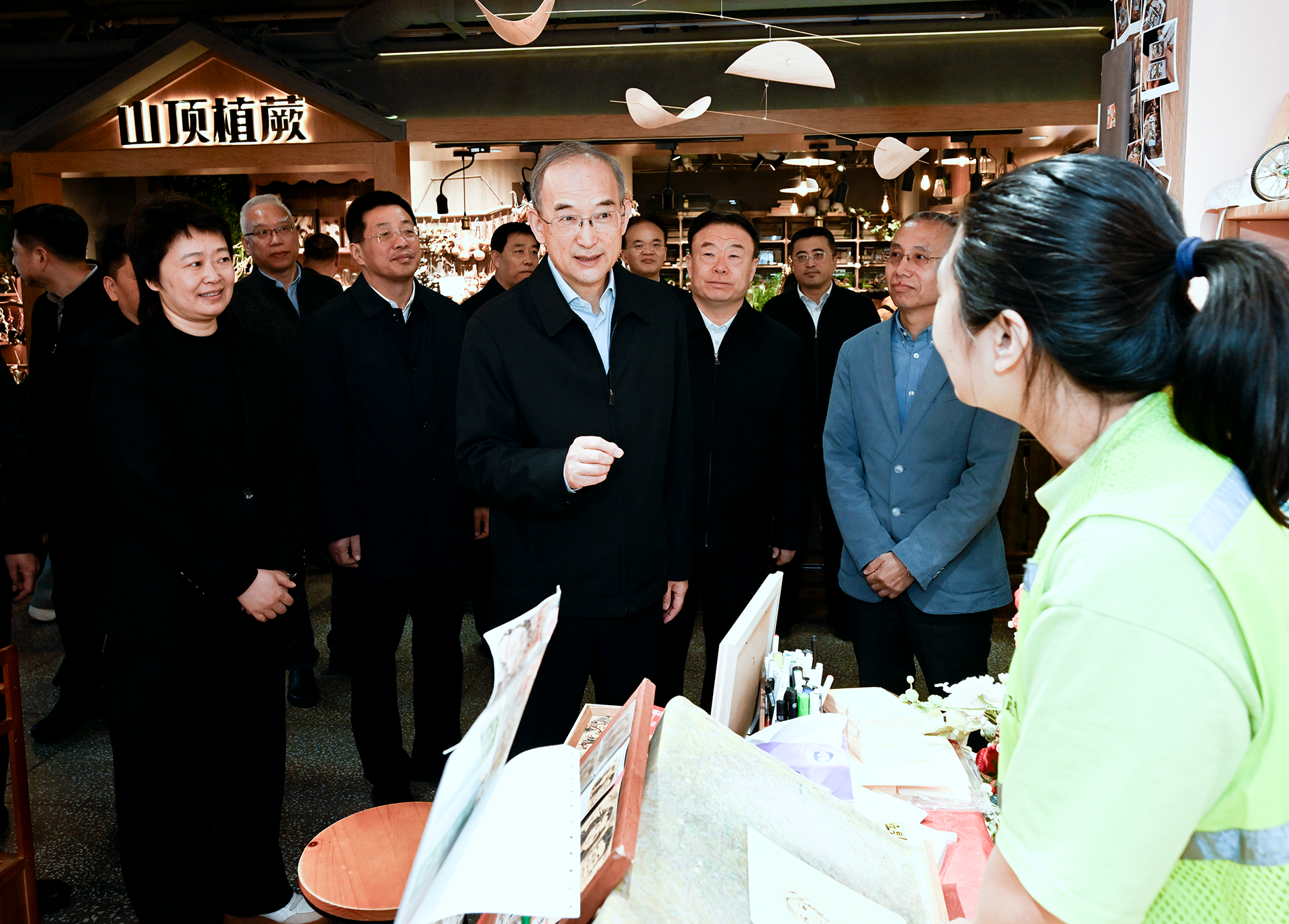 4月13日,省委书记黄强在长春调研,在“这有山”文旅综合体详细询问文创店铺经营情况。