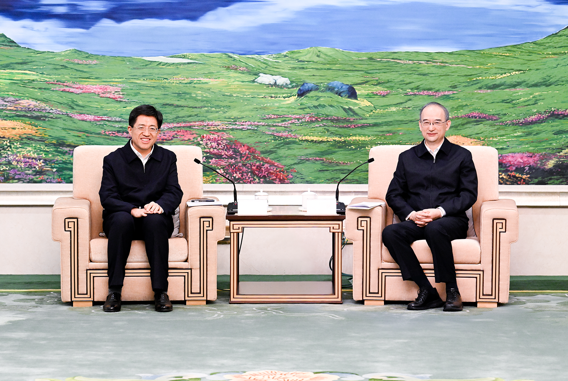 4月22日,省委书记黄强在长春会见团中央书记处第一书记阿东一行。