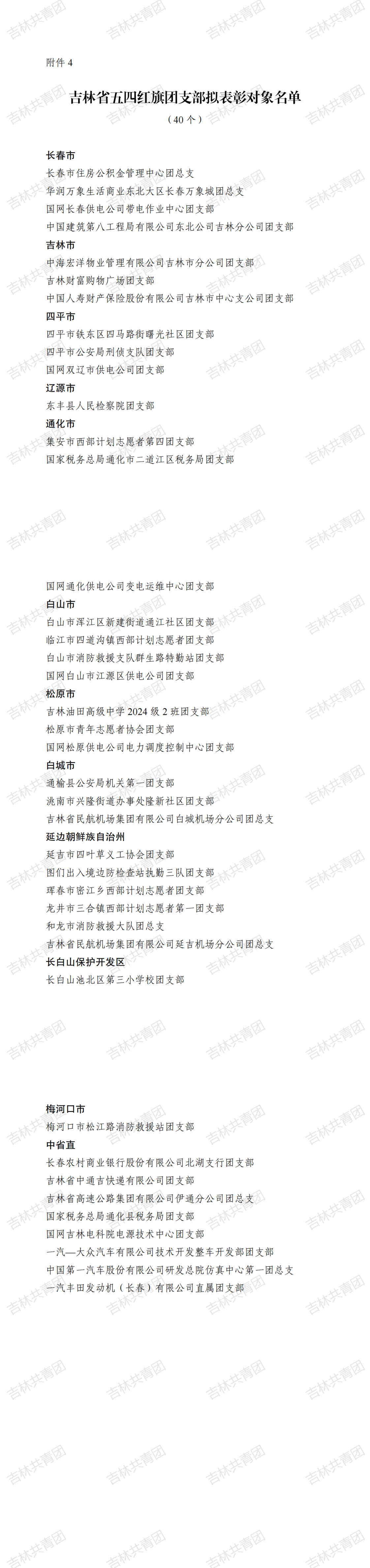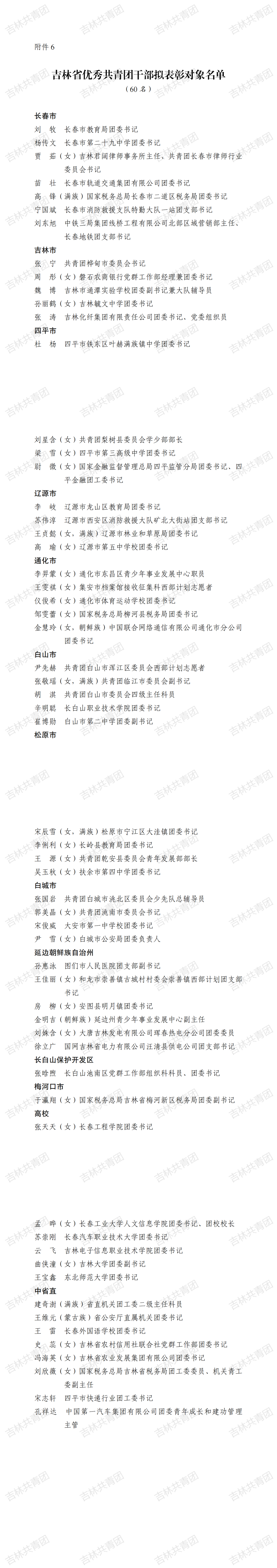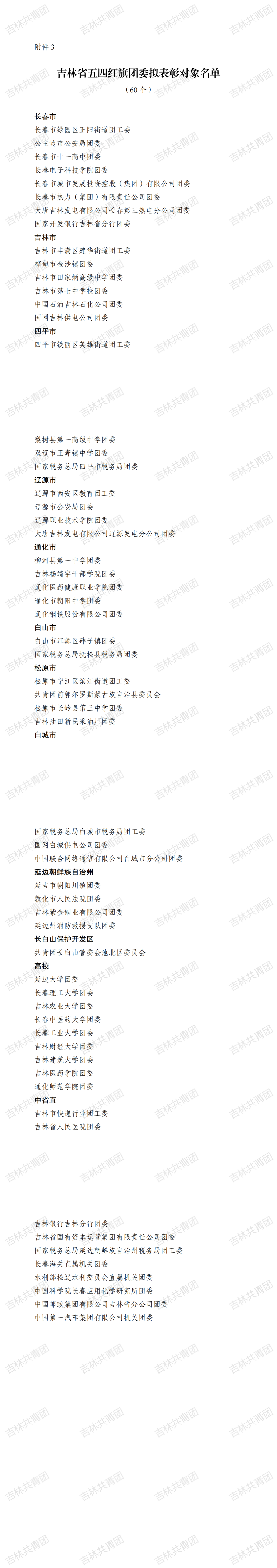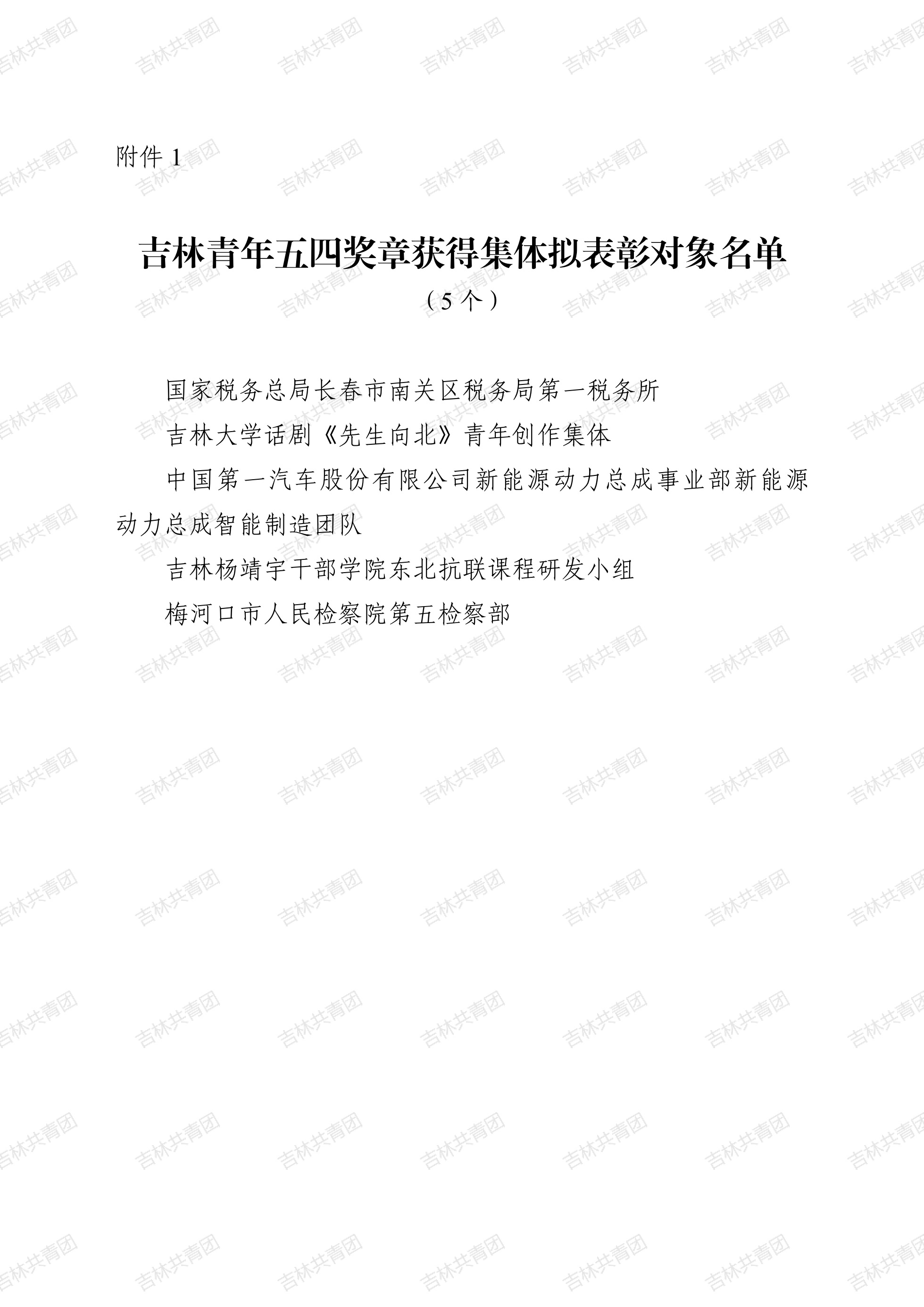 附件:1.吉林青年五四奖章获得集体拟表彰对象名单
