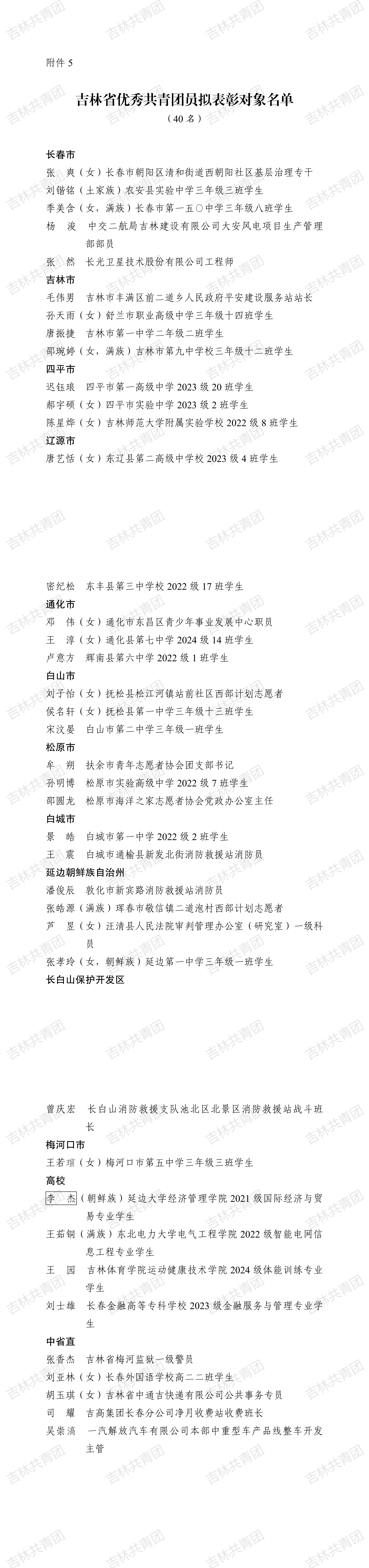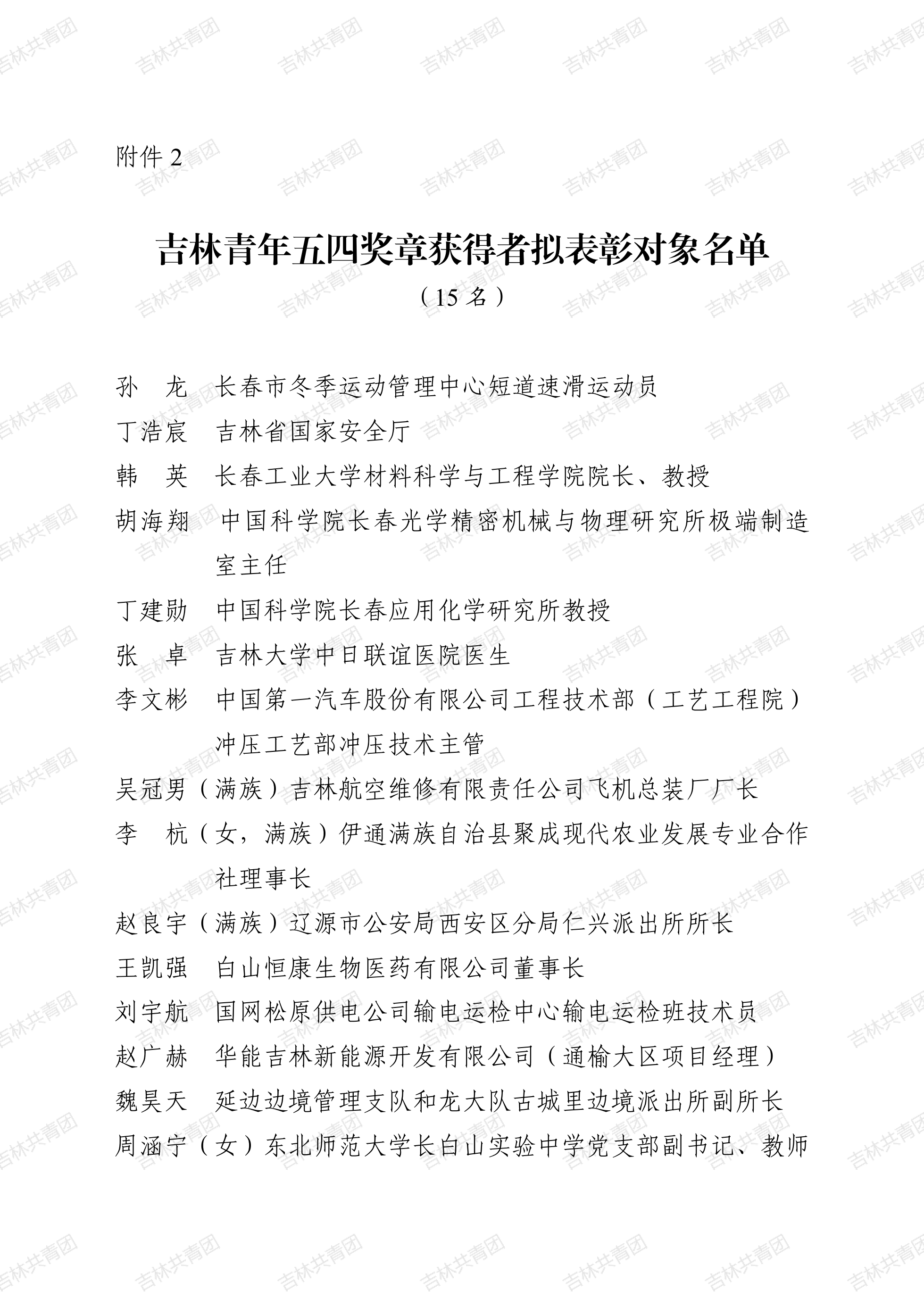 2.吉林青年五四奖章获得者拟表彰对象名单