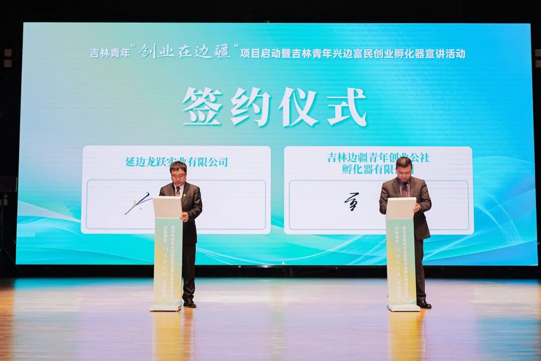 启动会上,延边龙跃实业有限公司与吉林边疆青年创业公社孵化器有限公司签订合作协议,在龙井市打造我省首个青年兴边富民创业孵化器。孵化器重点聚焦边境地区产业发展方向,围绕特色农业、乡村文旅、数字电商、社会服务、科技赋能等5方面孵化创业项目,对入驻企业实行零成本拎包入驻,提供政策兑现、融资贷款、品牌策划、市场营销及证照代办、财税辅导、法律咨询、人力资源等全流程一站式服务,帮助创业企业快速成长,打造成为青年创业集聚地。