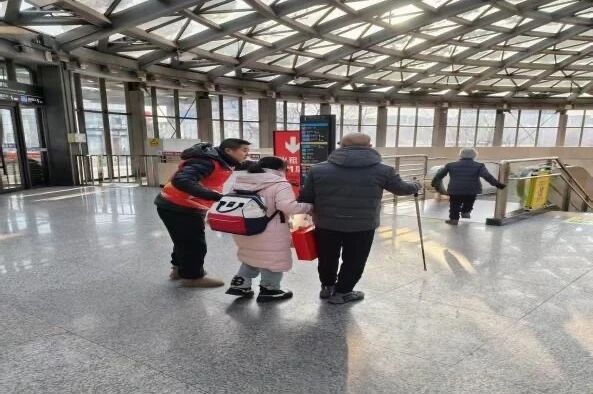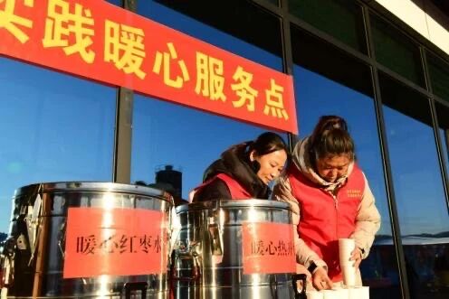 团松原市委整合社会资源,携手多家社会工作服务中心与志愿者协会,于松原站、扶余站推行“一站式”便民服务,提供引导咨询、秩序维护、发放暖贴以及为旅客送上暖心茶等多元化志愿服务。
