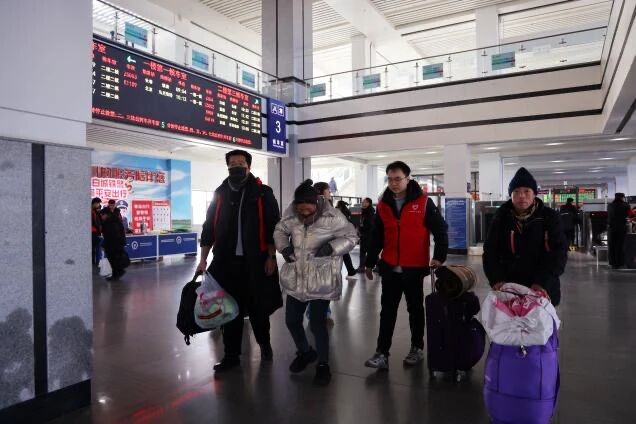团通化市委广泛发动全国各高校返乡大学生、团员青年以及社会爱心人士,组建青年志愿服务队,在通化火车站、公路客运站等交通枢纽集结,以青春热血为寒冬中的归乡旅途增添温暖力量。