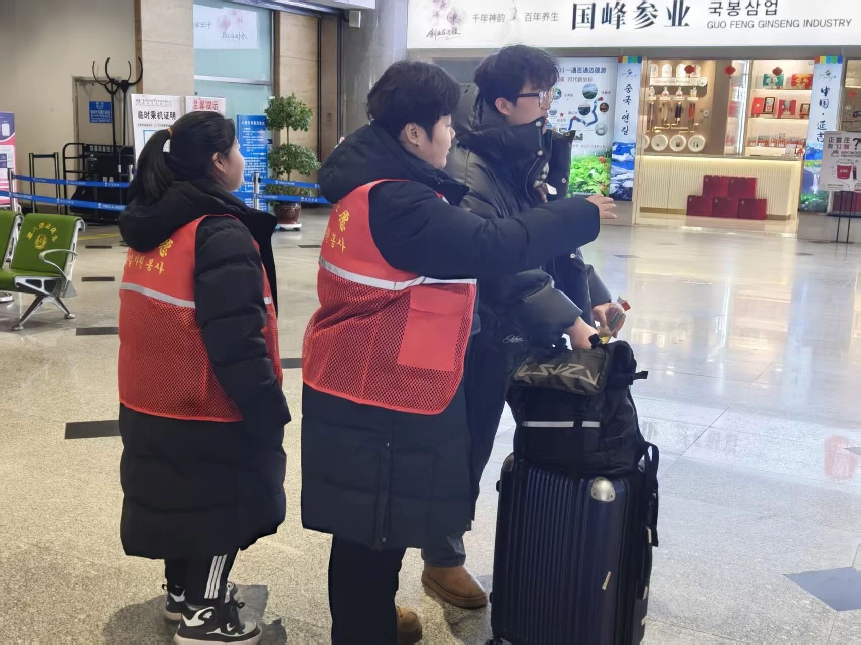 团延边州委结合边境地区特色,在延吉站、延吉西站、珲春站等重点车站提供双语志愿服务,在主要车站设立“国际旅客服务专岗”,方便中外旅客返乡旅游。